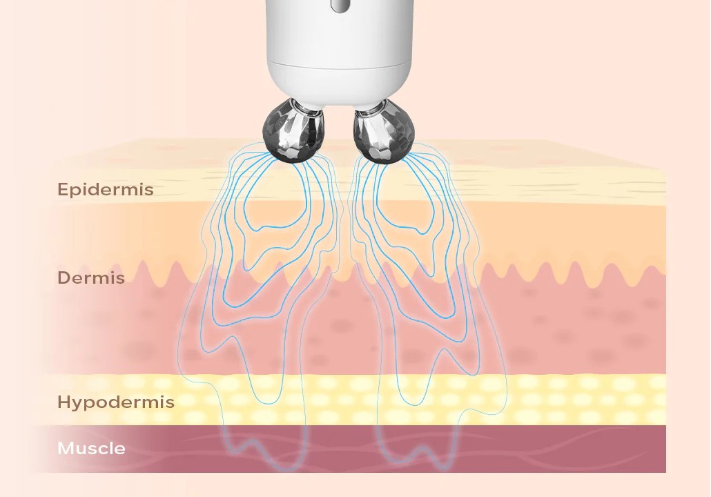 • RF (radiofrekvencija): Prenosi toplotnu energiju u kožu radi bolje nahranjenosti,  zatezanja, i boljeg tonusa kože.